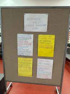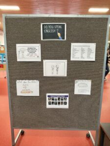 U auli škole izložene su ilustracije zamišljenog putovanja kroz više od 50 europskih jezika s osnovnim riječima i zanimljivostima. Na zabavnim plakatima učenici su mogli saznati neobične činjenice o službenim, ali i manjinskim, pa čak i nepoznatim jezicima koji se govore na području Europe. Zajedno sa svojim nastavnicama izradili su zanimljive kreativne radove na temu stranih riječi u hrvatskom jeziku, pogrešnih prijevoda ili kulturoloških činjenica te stvorili tri kutka posvećena trima jezicima koji se uče u školi, engleskom, talijanskom i njemačkom. Za druga dva jezika, španjolski i portugalski, organizirani su kratki tečajevi za učenike. Osim toga, svakodnevno za vrijeme velikog odmora, svi su mogli uživati u glazbi i video-spotovima na svim spomenutim jezicima, kao i na francuskom i latinskom.