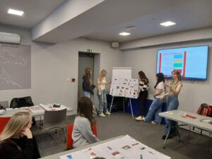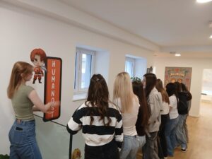Naše su učenice razgledale izložbeni prostor i upoznale se s nastankom pokreta koji je doveo do osnutka Crvenog križa, kao i ključnim osobama iz njene povijesti. Volonterka Crvenog križa ih je vodila kroz predstavljanje temeljnih načela i socijalne i humanitarne programe. U zasebnim praktičnim kutcima, učenice su imale priliku pogledati dokumentarni film o sigurnosti na internetu i prevenciji trgovine ljudima te saznati više o zaštiti zdravlja, sudionicima civilne zaštite i dobrovoljnom davanju krvi.